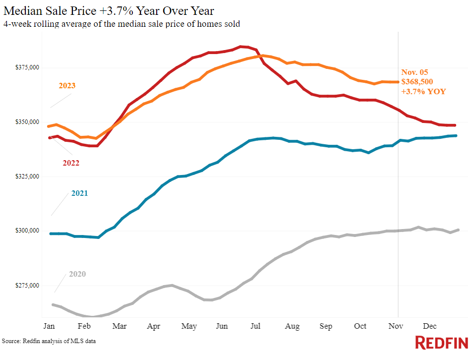 While overall nationwide housing inventory remains low, there has been an unseasonal uptick in the total number of homes for sale, which is at its highest level since the start of the year. New listings rose 1.5% from a year ago during the four weeks ending November 5, just the second increase since July 2022.