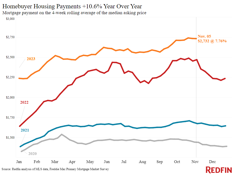 Though rates are more than double pandemic-era levels and some homebuyers are still priced out of the market, rates going from near the 8% mark to 7.50% shaves a few hundred dollars off a monthly mortgage payment in many areas. A homebuyer in Seattle, for instance, would pay $4,984 per month for a median-priced home ($775,000) with a 7.4% mortgage rate, compared to $5,240 monthly with rates at the 8% mark.