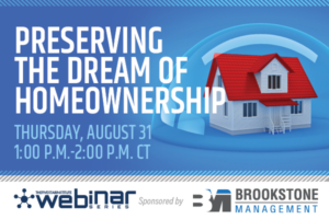 The next installment in the Five Star Institute Webinar Series, held in partnership with Brookstone Management, “Preserving the Dream of Homeownership” is set for Thursday, August 31 from 1:00 p.m.-2:00 p.m. Central.